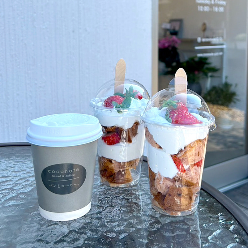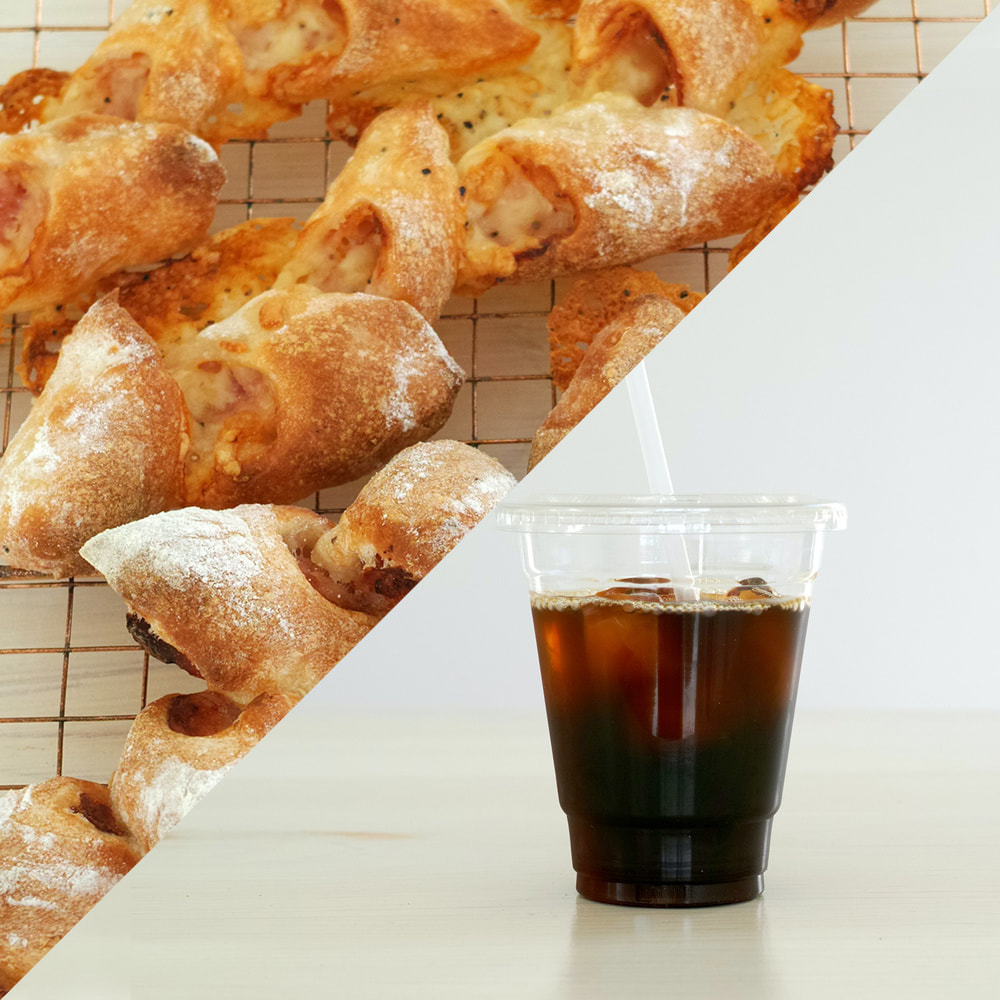 coconoteは基本テイクアウトでパンとドリンクをご注文いただけます。セットメニューではパン1個とドリンクがセットになったお得なセットをはじめ、パン単品でのご購入やドリンクのみのテイクアウトも可能です。コーヒーは山口県美祢市のsonoda coffeeさんにブレンドしていただきましたcoconoteオリジナルコーヒーです。